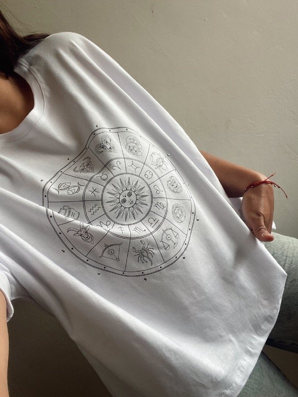Remera 100% algodón, con tajos laterales, más larga atrás que adelante.